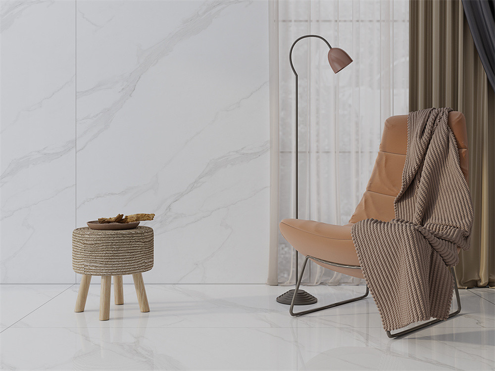 Quando torni dal lavoro e accendi la luce a casa, vedrai che il pavimento è decorato con lastre di pietra sinterizzate vintage.e l'effetto pavimentazione è molto atmosferica. Lo spazio del soggiorno è molto luminoso. Quando si siede a bere acqua, il tavolo da pranzo di una lastra di pietra sinterizzata bianca carrara è molto lussuoso, impermeabile e bello.La lastra di pietra sinterizzata in porcellana AAA aggiunge un tocco di luminosità e raffinatezza al soggiorno.