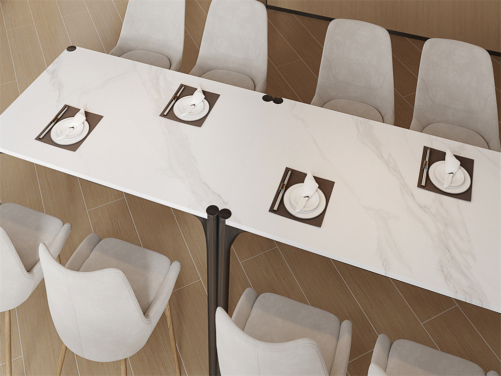 Se vi piacciono le tonalità vivaci, potete disegnare uncomodoLe lastre di marmo possono aiutare gli utenti a impostare il tono ideale per la sala da pranzo.Queste grandi lastre uniscono eleganza e funzionalità.Le superfici raffinate sono sufficientemente durevoli per resistere all'utilità a lungo termine, infondendo allo stesso tempo l'area con un fascino moderno.